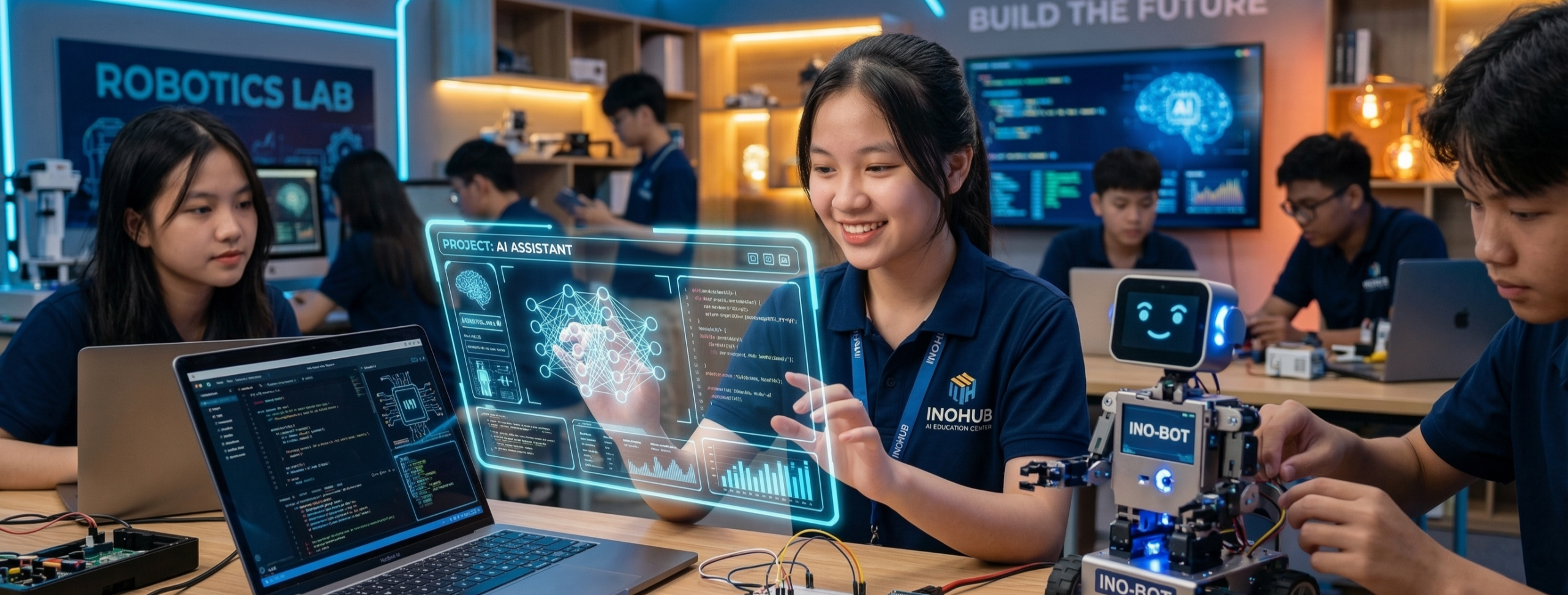 Nhiều phụ huynh vẫn nghĩ rằng: con chỉ cần học giỏi trên lớp là đủ. Nhưng trong thời đại AI, điều quan trọng hơn là khả năng sáng tạo, tư duy công nghệ và tự tạo ra giá trị. Những trải nghiệm học tập tại INOHUB giúp các em tự tin bước vào kỷ nguyên số.