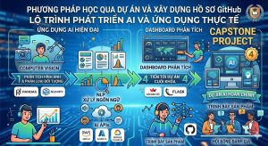 Ngoài ra, chương trình kết thúc bằng Capstone Project, nơi học sinh sẽ phát triển một dự án AI hoàn chỉnh từ bước phân tích dữ liệu, huấn luyện mô hình đến xây dựng ứng dụng và trình bày sản phẩm trước hội đồng đánh giá.