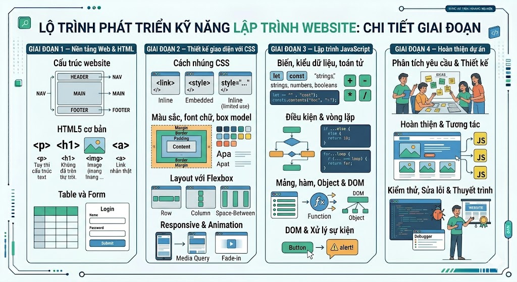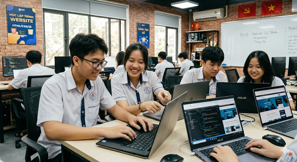 Khóa học Lập Trình Website (HTML5, CSS3, JavaScript) là chương trình đào tạo dành cho học sinh từ 12–16 tuổi muốn tìm hiểu về cách xây dựng và phát triển một website hoàn chỉnh. Khóa học giúp học viên nắm được các kiến thức nền tảng về lập trình web, từ thiết kế giao diện đến lập trình tương tác trên website.