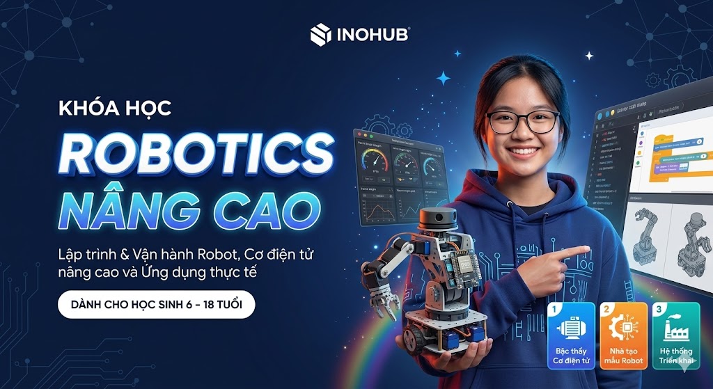Khóa học AI Robotics – Khóa Advanced được thiết kế nhằm giúp học sinh mở rộng kiến thức về robotics, công nghệ và trí tuệ nhân tạo (AI) thông qua các hoạt động thực hành sáng tạo. Trong quá trình học, học sinh sẽ được lắp ráp và lập trình nhiều mô hình robot khác nhau, từ các thiết bị phục vụ xây dựng, trò chơi giải trí đến các thiết bị gia dụng và mô hình động vật.